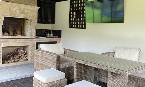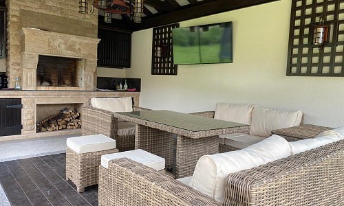 К имевшимся беседкам нашей работы добавили ещё одну - большего размера, для установки массажного стола.