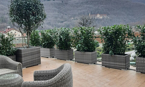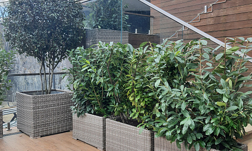 Прямоугольные и квадратные кашпо большого размера для деревьев и кустарников.