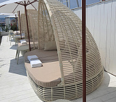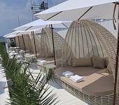 Посетители пляжа Дельмар в городе Сочи могут с комфортом расположиться в VIP кроватях-беседках нашего производства.