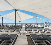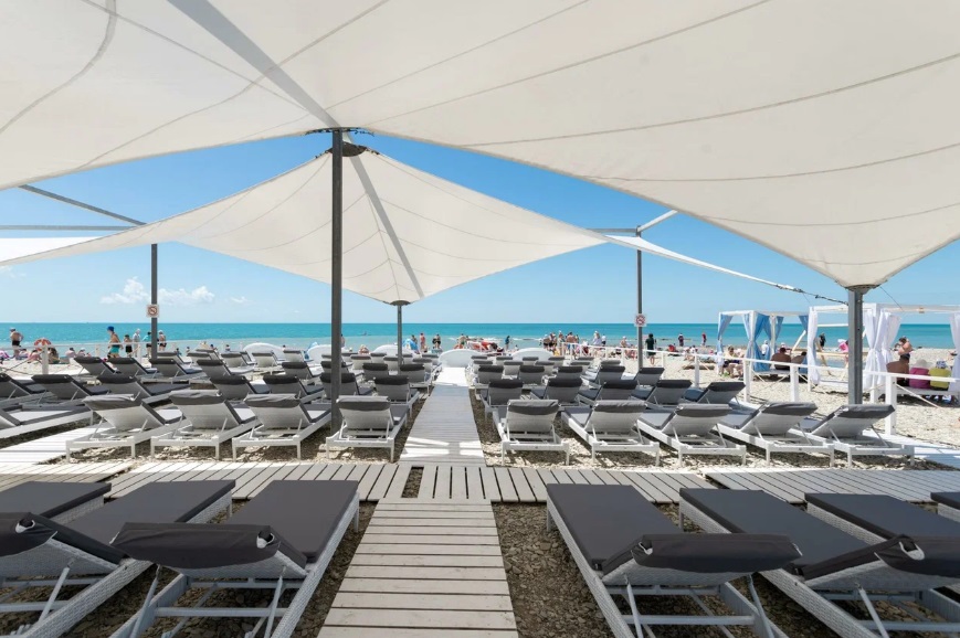 Проект был реализован с учётом архитектуры пляжа и общей концепции отеля: лаконичный дизайн, спокойная цветовая гамма и максимальный комфорт для гостей. Шезлонги органично вписались в пространство под тентовыми навесами, создав единый визуальный ритм и аккуратную, «курортную» эстетику.