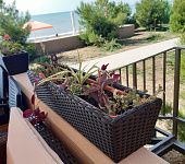 Прямоугольные кашпо на элегантном алюминиевом каркасе, украшенные плетением из искусственного ротанга цвета венге, идеально вписались в интерьер популярного ресторана на берегу Черного моря. Они стали настоящей визитной карточкой заведения, придавая ему особый шарм и создавая атмосферу комфорта и изысканности.