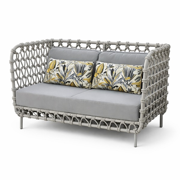 Алюминиевый каркас с плотным блестящим порошковым покрытием, инновационная техника плетения веревкой и мягкие подушки из уличного текстиля, украсят любое открытое пространство или жилое помещение. Можно использовать как уличную мебель круглый год.