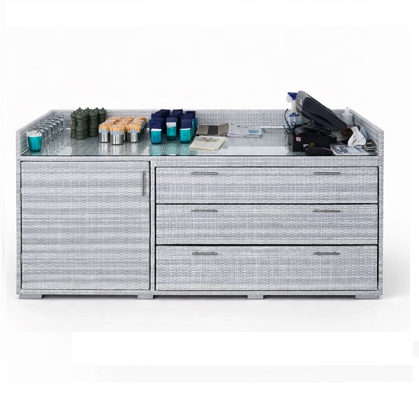 Тип Комод из искусственного ротанга Цвет Бело-серый Высота 90 см Материал каркаса алюминий Материал экоротанг -