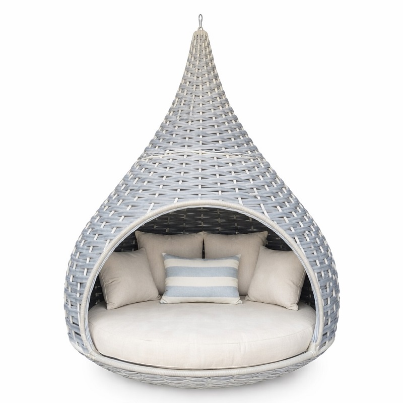 Современная подвесная кровать в форме кокона — идеальное решение для отдыха на свежем воздухе. Эргономичная форма, мягкие подушки и частично закрытая конструкция создают уют и приватность. Подходит для сада, дачи, террасы, зоны у бассейна или панорамной веранды. Может крепиться к ветке дерева или другой прочной опоре. Также возможна установка на специальное основание (не входит в комплект).