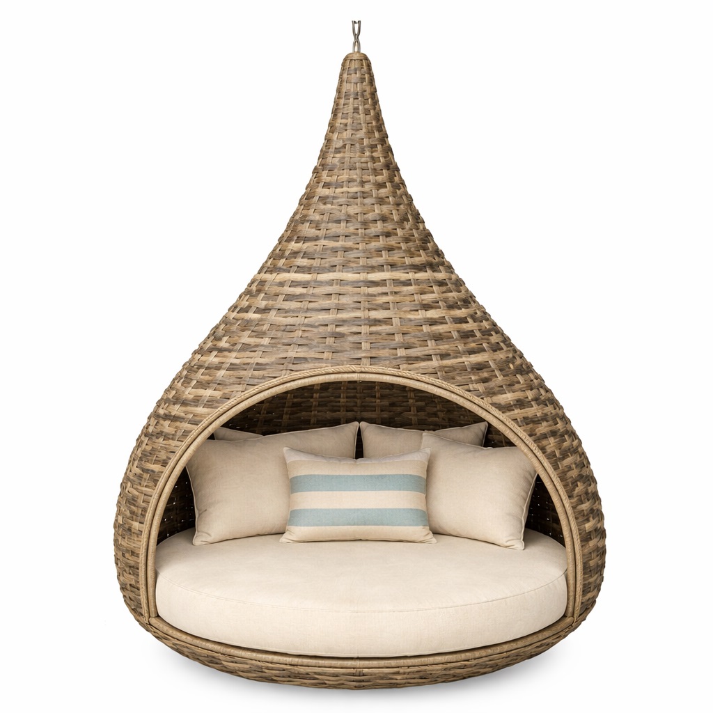 Погрузитесь в атмосферу абсолютного комфорта с нашим подвесным коконом ручной работы из высококачественного искусственного ротанга. Благодаря крепкой подвеске и продуманной форме, кокон идеально подходит для отдыха в саду, на террасе, у бассейна или на берегу реки.