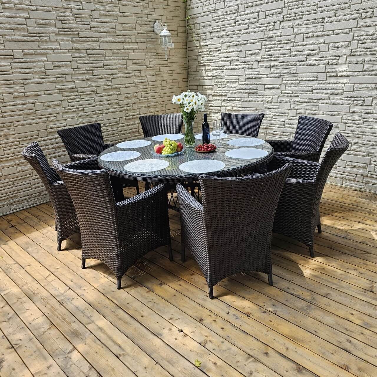 Обеденный комплект плетеной мебели на 8 человек с круглым столом Кипр из искусственного ротанга