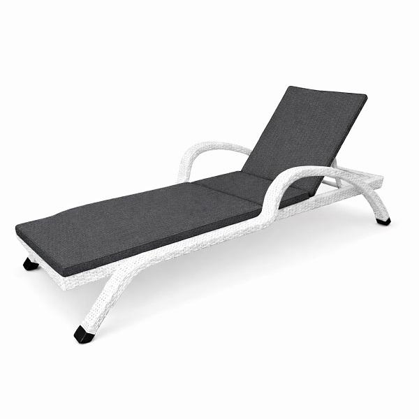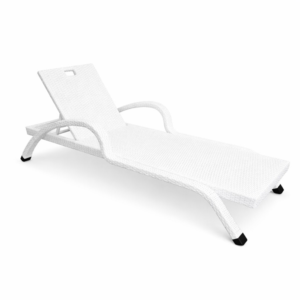 Каркас выполнен из алюминия и оплетён прочным жгутом из искусственного ротанга, устойчивого к влаге, солнцу и перепадам температур. Анатомическая форма лежака и регулируемая спинка с четырьмя положениями обеспечивают максимальный комфорт для отдыха, загара или чтения. Подлокотники и плавные линии подчёркивают современный и аккуратный внешний вид модели.