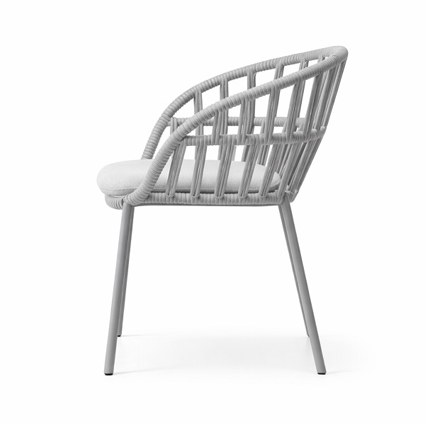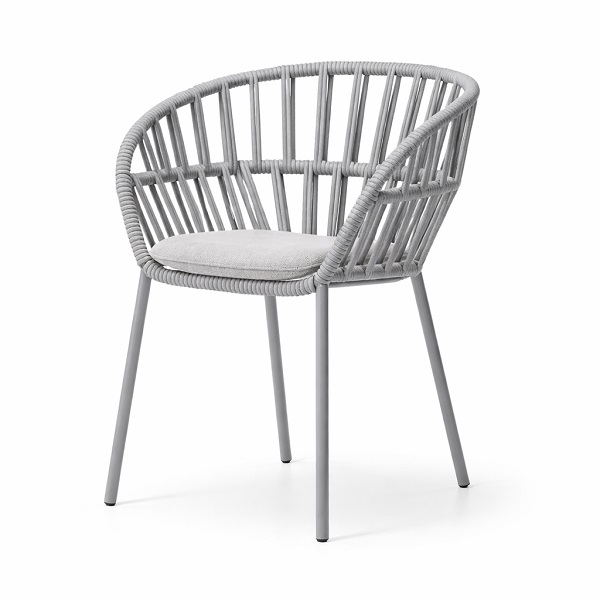 Тип плетеный обеденный стул, уличная мебель Цвет Бело-серый Высота 76 см Материал каркаса алюминий Модель Гала Количество подушек в комплекте 1 штука на сиденье Толщина подушки сидения (см) 5 Материал роуп (плетеная веревка, rope cord) -