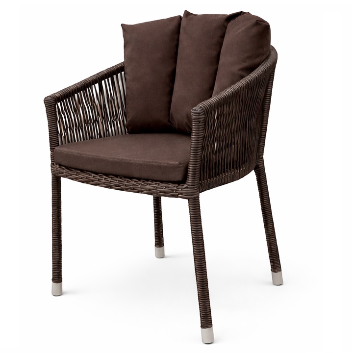 - Алюминиевый каркас не заржавеет, а значит стул будет служить вам много лет, плетение ротангом премиум качества не расползется и не растрескается, что тоже увеличивает срок службы изделия. Эти материалы не боятся солнечных лучей, природных осадков, не гниют и не плесневеют.
